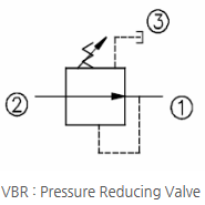 - 파일럿 구동형 카트리지 감압 밸브 VBR 심볼을 보면 정상 상태에서 1과 2가 열려 있는 상태임을 알 수 있다. 따라서 NO 즉 정상 열림 밸브이다.