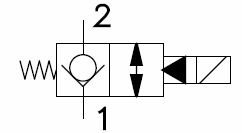 스프링이 아주 작은 솔레노이드 밸브의 경우도 포핏 타입인지 스풀 타입인지 확인해 보고 응용해야 한다. 이는 유압 심볼을 보면 쉽게 구분할 수 있다. 포핏 타입의 경우 체크 심볼이 있고 스풀 타입인 경우 양쪽이 막혀있다. 세번째 그림이 스풀 타입, 네번째 그림이 포핏 타입 솔밸브의 유압 심볼이다. 당연히 스풀 타입의 내부 리크가 더 많다.